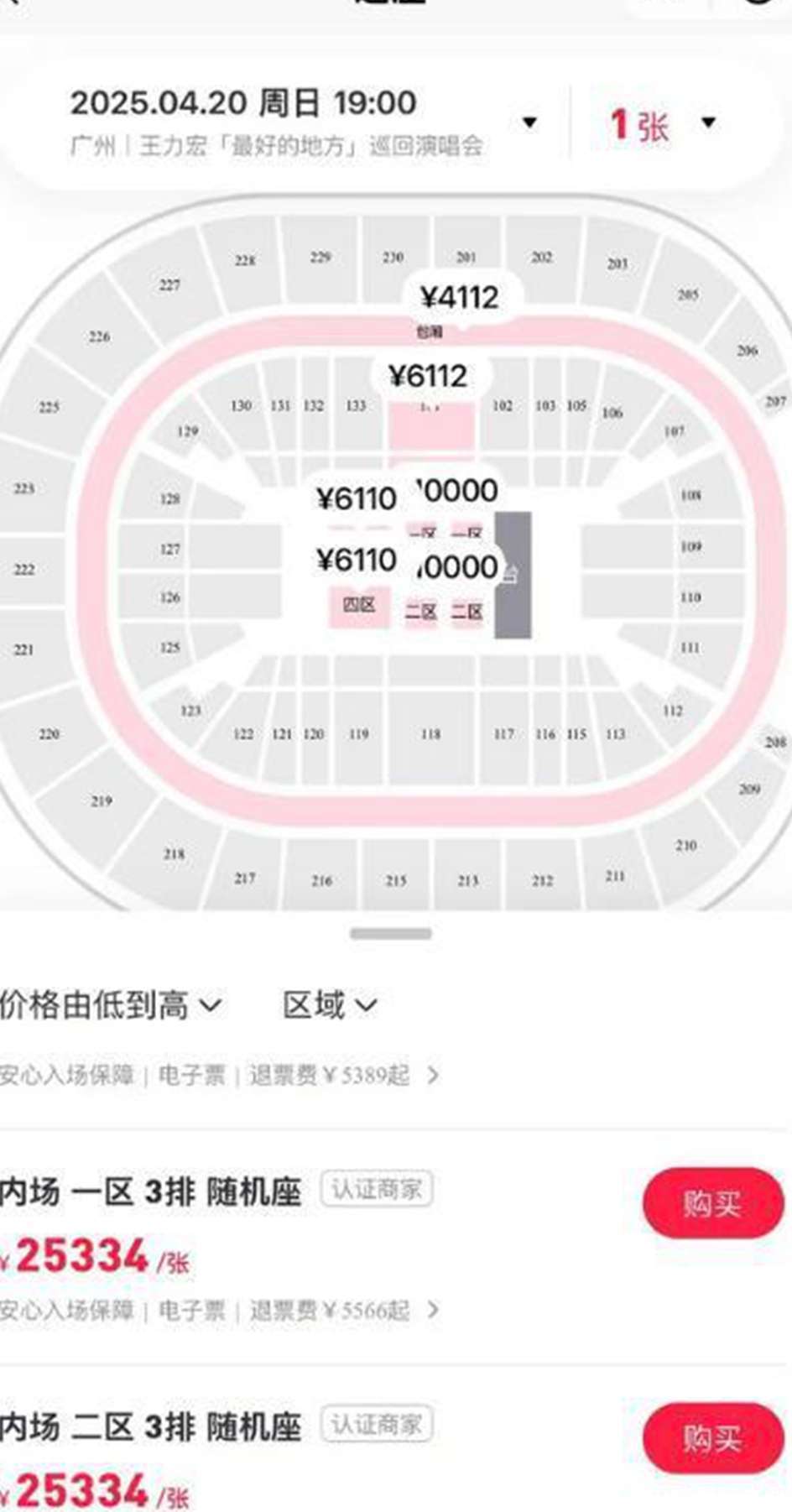 先来说说王力宏的演唱会吧。他的2025年巡回演唱会首站定在了广州宝能广州国际体育演艺中心,这地儿可不小,能容纳18,000人呢。在大麦网上啊,想看的人数超过了49万,这数字听着可不小,感觉应该是场场爆满才对。可实际上呢,这票卖得那叫一个“刺激”。演唱会门票嘛,按照市场经济的那一套来走,这在商业社会里好像也没毛病。但是啊,这二手平台上的内场票居然高达25,334元一张,这可不得了,比原价可是高出了14倍啊。这时候啊,大家的反应就各不相同了。有些粉丝那是铁了心要支持自己的偶像,觉得只要能看王力宏的演唱会,花多少钱都值得,这就像是那句俗语说的“追星族——一根筋”,只要认准了自己的偶像,那是一头扎进去就不回头。可也有很多人觉得这票价高得离谱,而且王力宏之前出了那些事儿,就不应该再为他掏腰包。网友们也在社交媒体上炸开了锅,都觉得这就是市场在炒作。